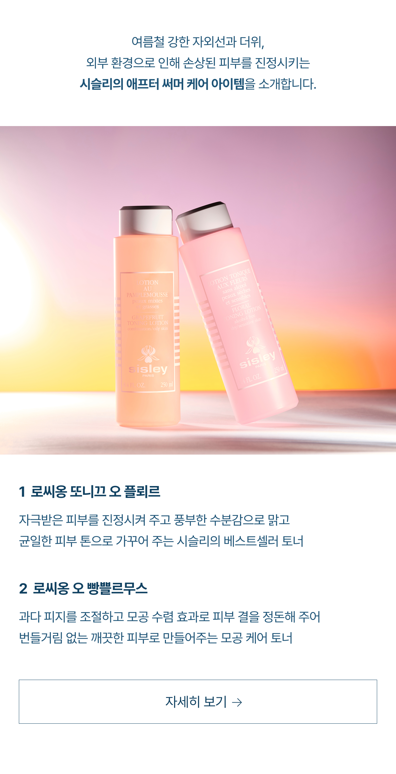 강한 자외선과 외부 환경으로 지치고 손상된 피부를 위한 애프터 써머 케어 아이템을 만나보세요.